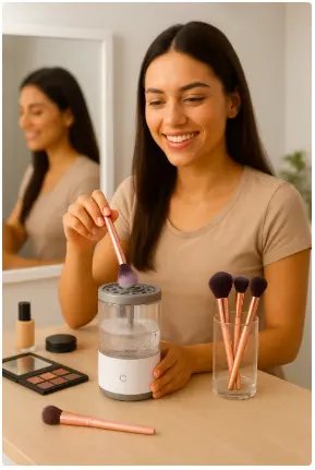 Con la Lavadora de Brochas USB, limpias y secas tus brochas en solo 10 segundos ✨. Protege tu piel, ahorra tiempo y prolonga la vida de tus herramientas de maquillaje.